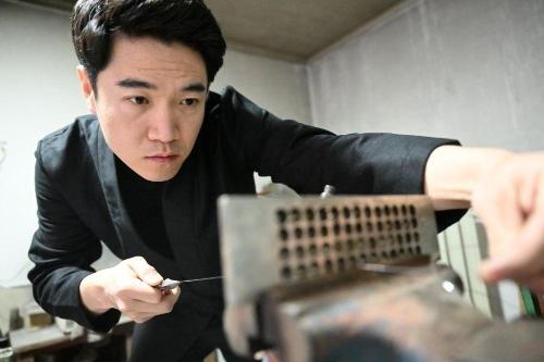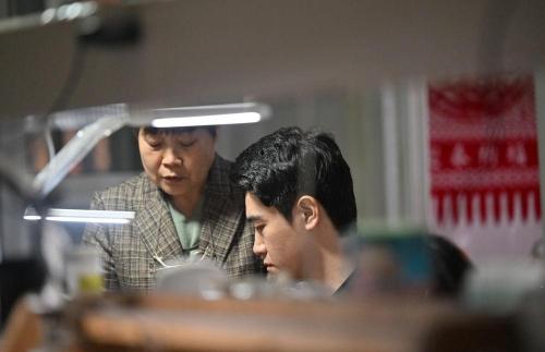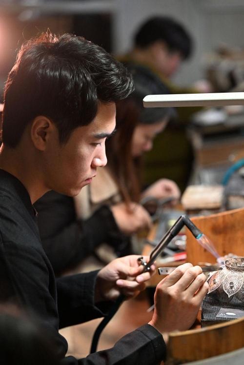 马赛在工作室内制作花丝镶嵌制品(3月19日摄)。新华社记者 李然 摄