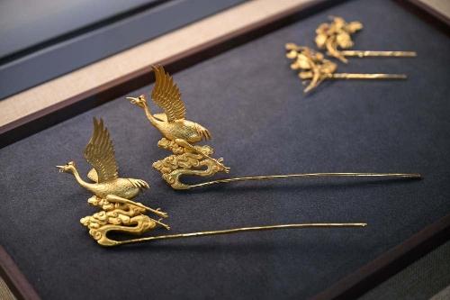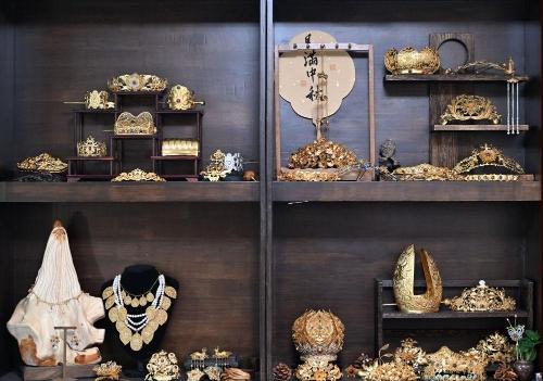 这是3月23日在天津市武清区博物馆拍摄的花丝镶嵌展览品。新华社记者 孙凡越 摄