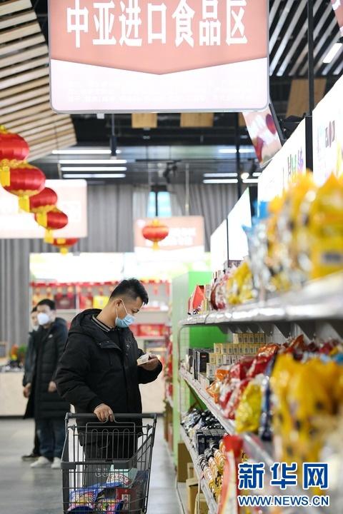 在位于西安浐灞国际港的爱菊健康生活体验馆,消费者挑选中亚进口食品。新华社记者李一博 摄