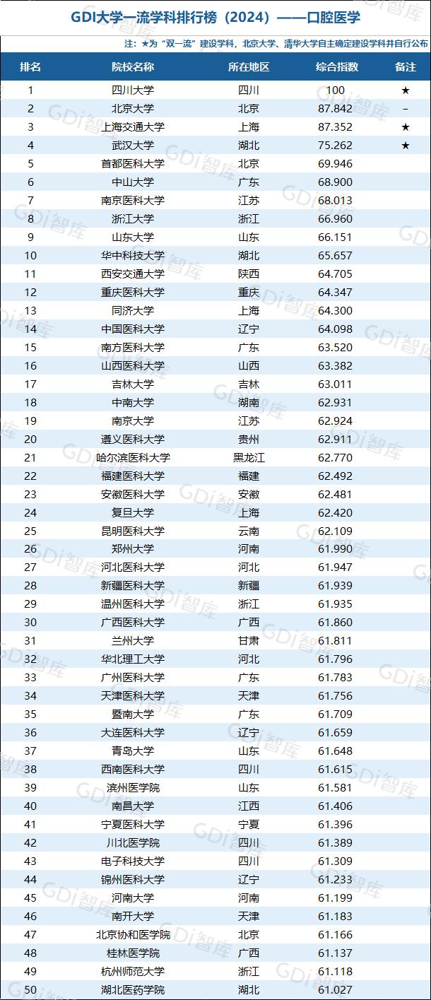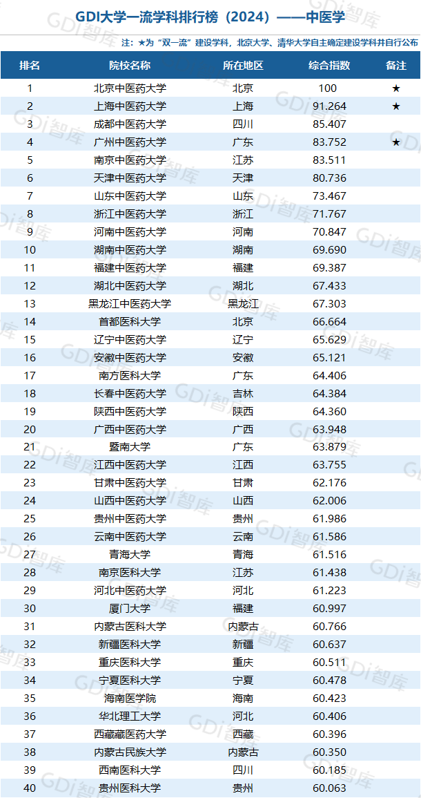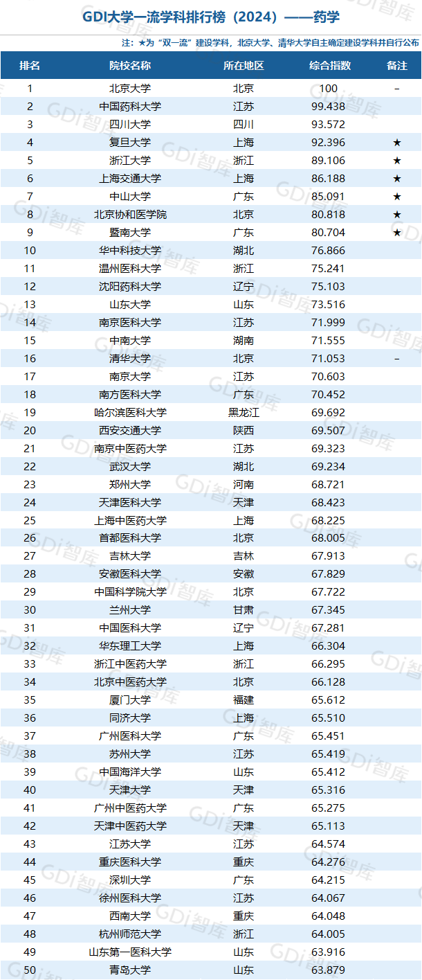 5月16日,GDI智库发布GDI大学一流学科排行榜(2024),对全国534所院校的91个学科进行评价、排行。