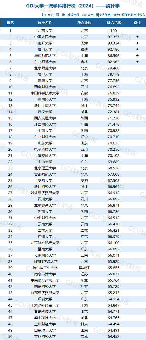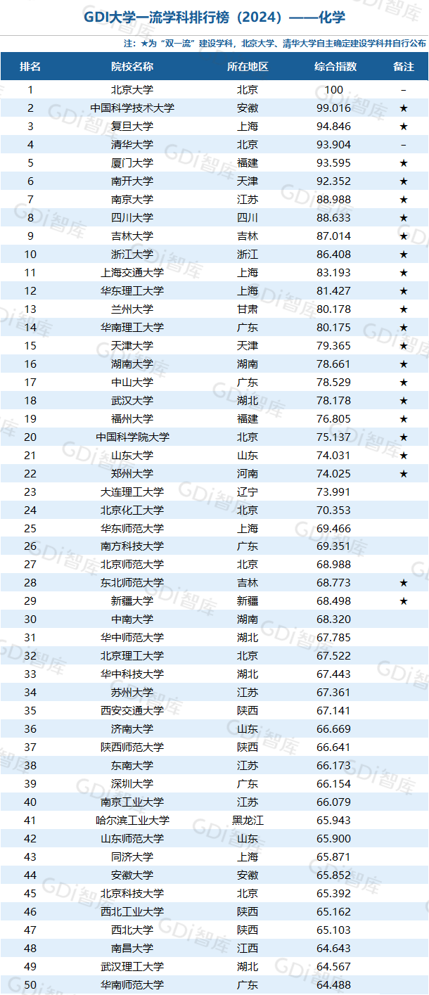 学科是高校承担大学功能的基本载体,是实现高等教育内涵发展的基本支撑,其发展水平在一定程度上决定大学的学术声誉和综合实力。GDI大学一流学科排行榜(2024)对20个人文社会学科、34个自然科学学科和37个工程学科进行评价,涵盖上述学科设有硕士点的全部院校(不含香港特别行政区、澳门特别行政区和台湾地区院校,未涉及军事类院校)。
