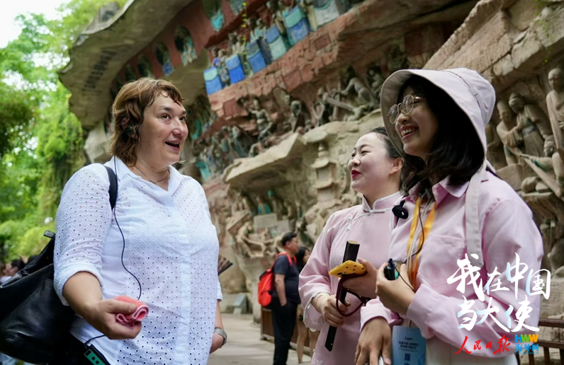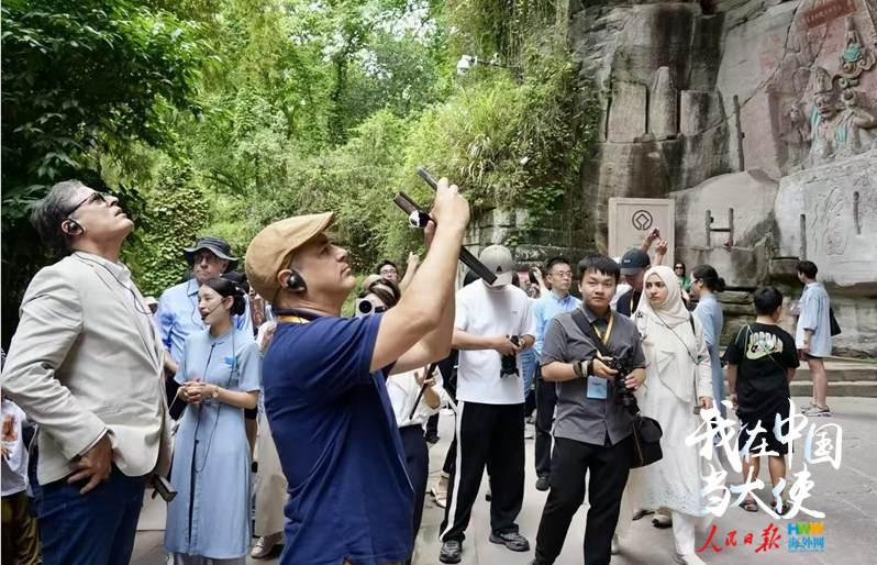 5月19日,驻华使节在大足石刻宝顶山景区参观。(海外网 谢明 摄)
