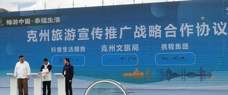 活动现场,克州文旅局与字节跳动、携程集团签署了克州旅游宣传推广战略合作协议。