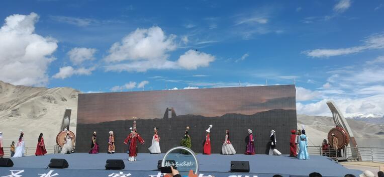 活动现场以白沙山为背景的舞台设计获得游客赞赏。