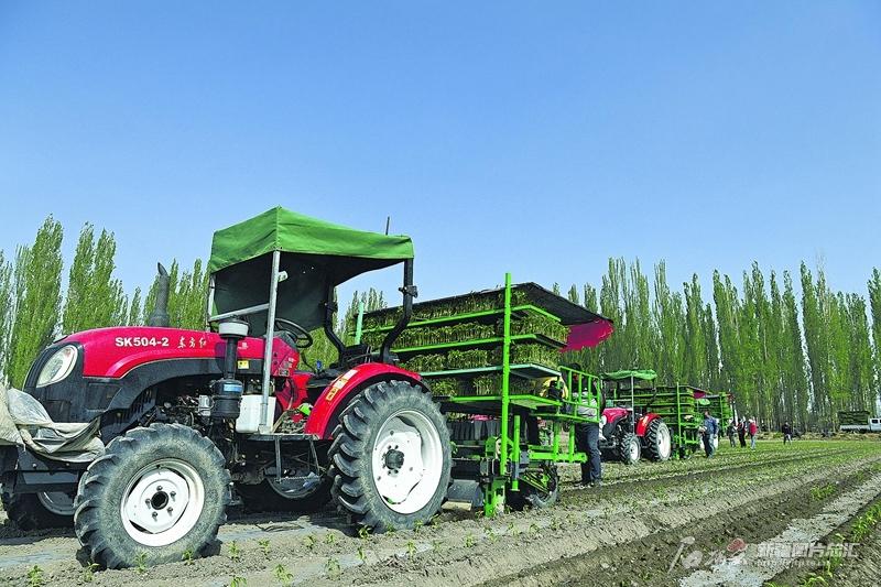 农机是农业现代化的装备支撑,通过多年发展,沙湾市大宗农作物种植综合机械化使用率达100%。今年,当地还引进了升级版的番茄苗移栽机,可以一次完成打穴、栽苗、覆土、压实等作业程序,省工省时。在番茄苗移栽季,移栽机生产厂家也派出技术员跟机作业,确保移栽作业顺利进行。