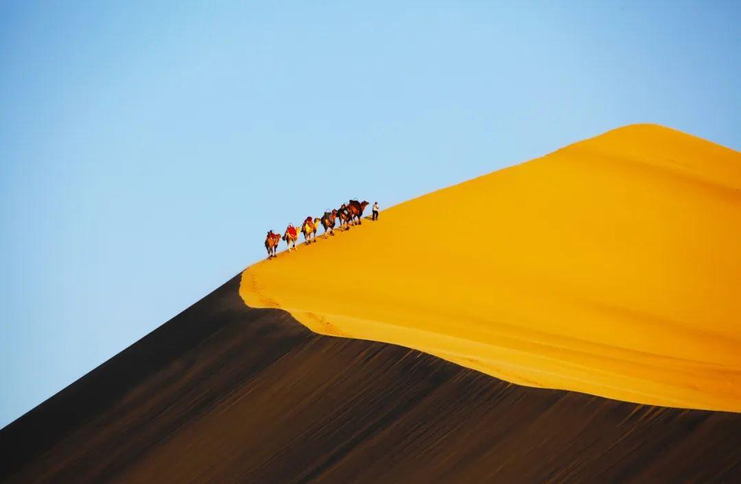 夕阳下的鸣沙山。