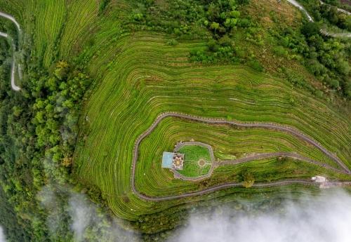 进入墨脱,路两旁、半山腰、云雾间,可见大小不一的茶园。背崩乡格林村的茶园在群山怀抱中层层叠叠,采茶的村民在云雾缥缈间若隐若现。