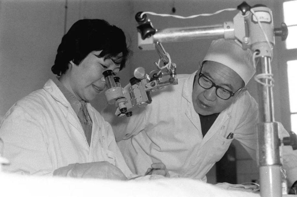 吴孟超(右)在指导助手做实验(资料照片)。新华社发