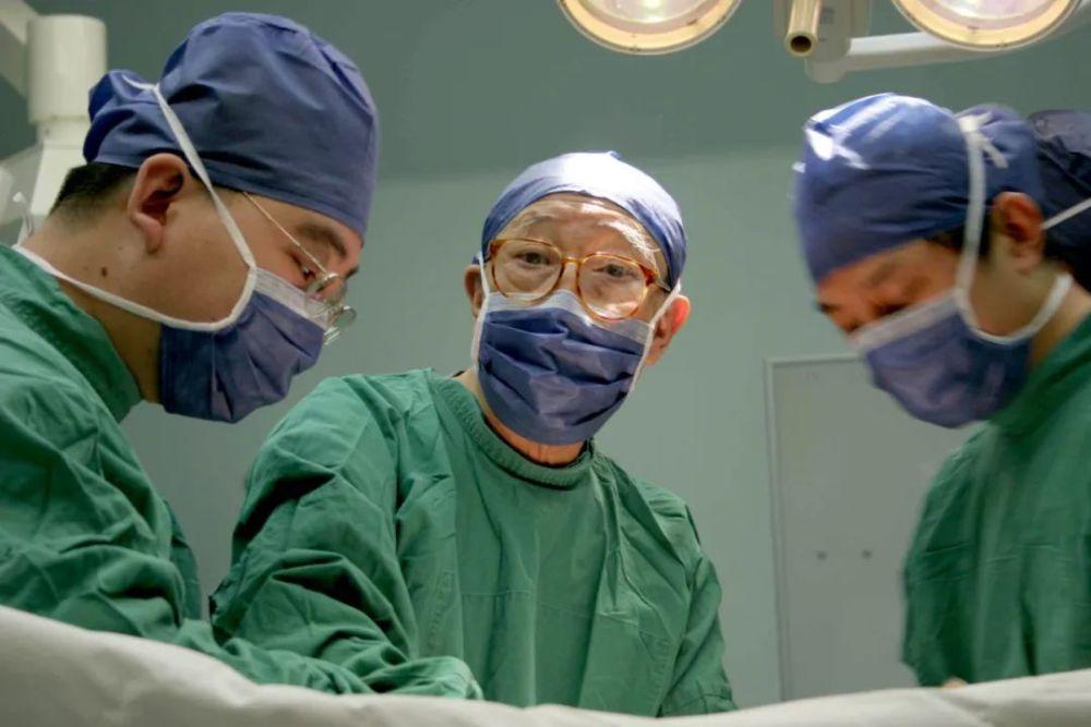 吴孟超院士(中)在手术室内工作(资料照片)。新华社发