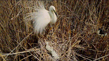 芦苇丛中,五千多只白鹭幼鸟破壳而出,蹒跚学步、眺望远方,灰白相间的苍鹭幼鸟在成鸟的羽翼下休憩。