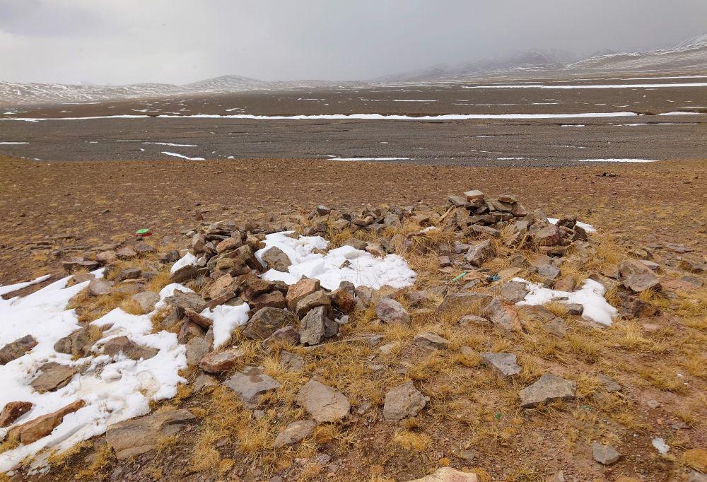 我们用了4天时间才来到罗布玉杰牺牲地附近,这里距最近的人类活动区约370公里。在这里,人们为他立了一座纪念碑。每次巡护经过这里,野生动物专业管护员们都要为他献上哈达,撒上美酒,默哀致敬。