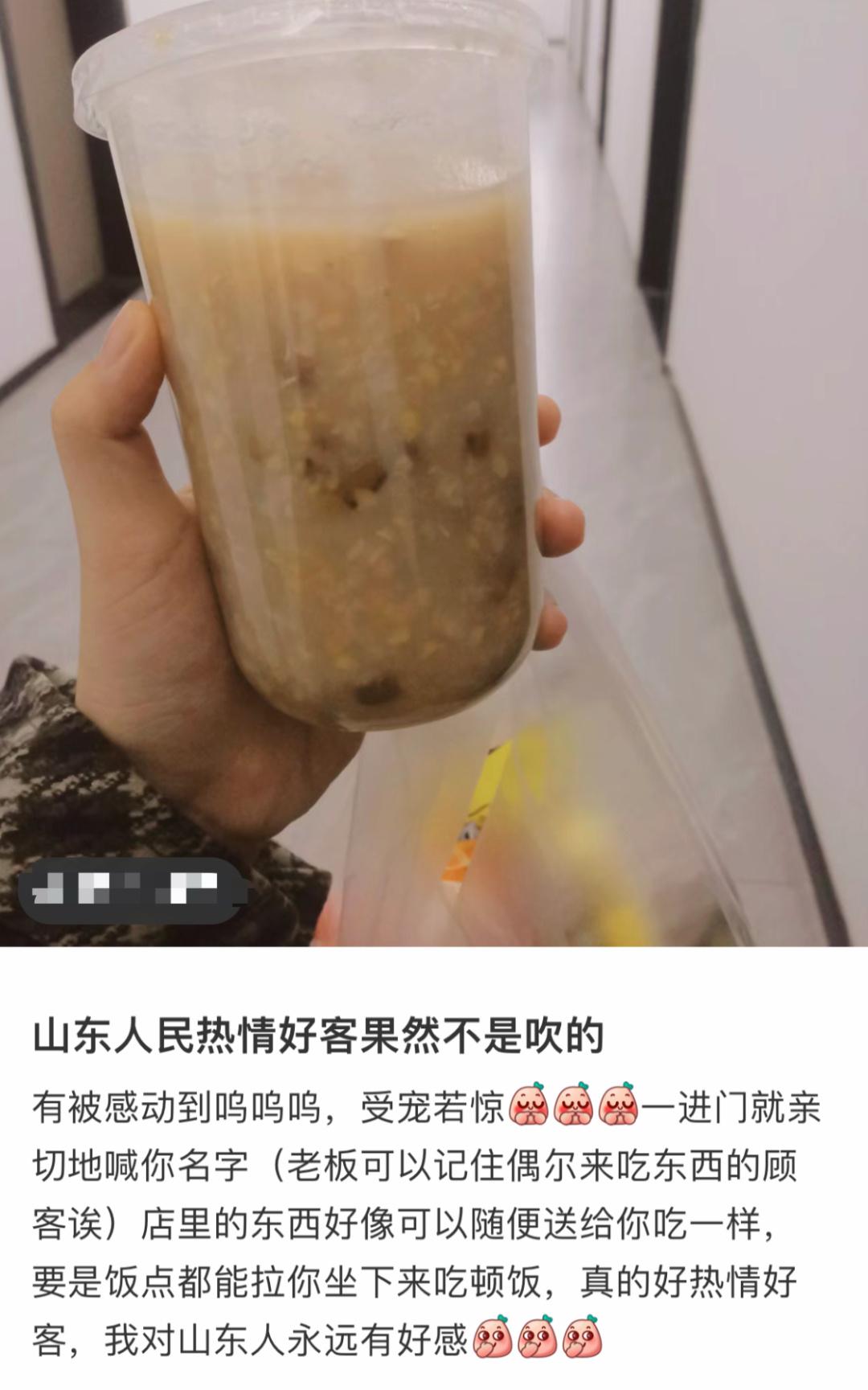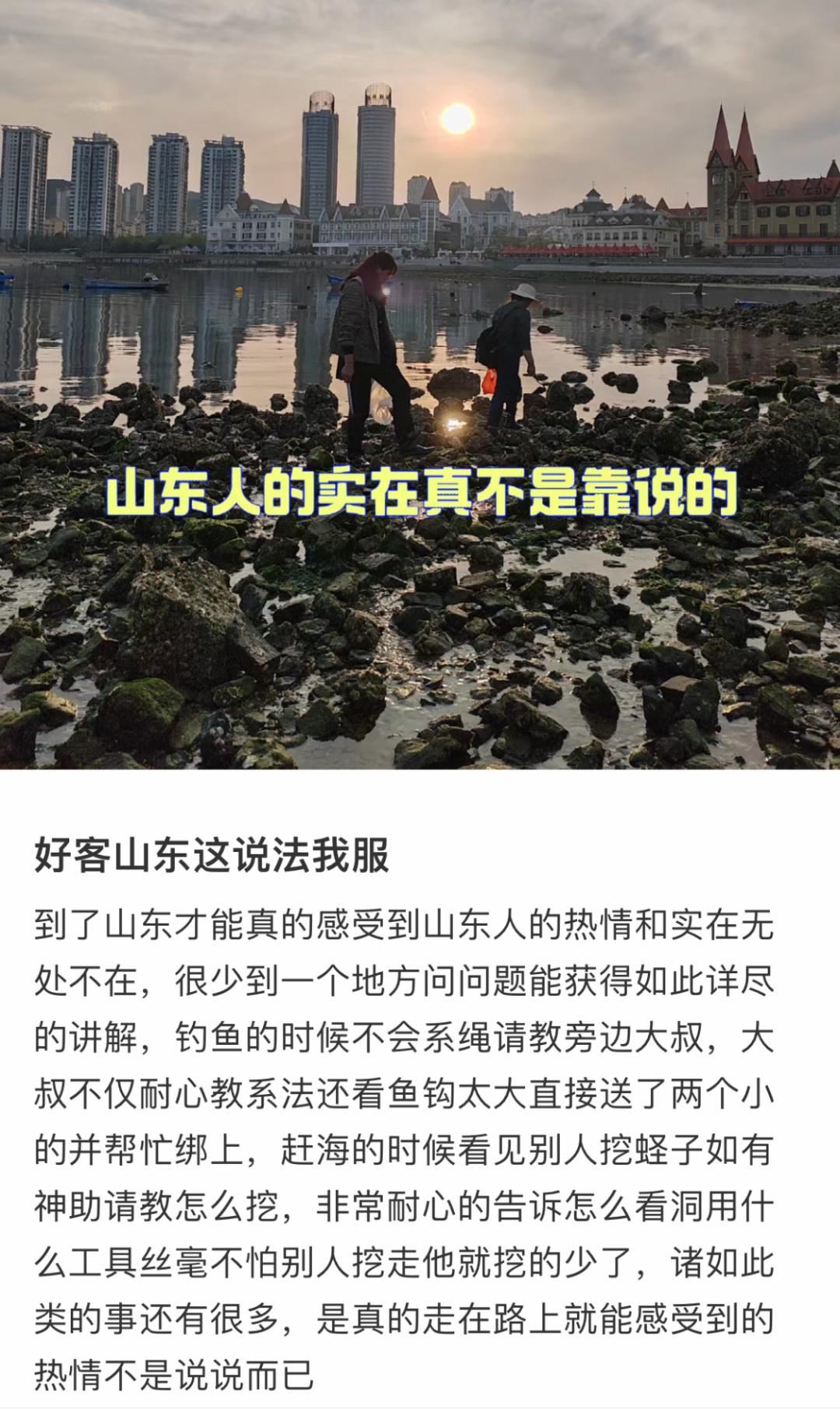 有人去威海旅游,当地大爷一路热情讲解威海攻略;有人自驾去山东旅游,遇上景区排队,山东小伙主动帮忙看车;有人只是好奇山东大哥买的啥,就被果农免费相送;还有北京姑娘来青岛度假,只因问了一句“有没有牛奶”,就被大家争相“投喂”,成为团宠。