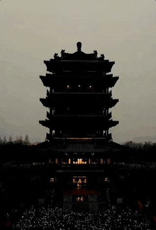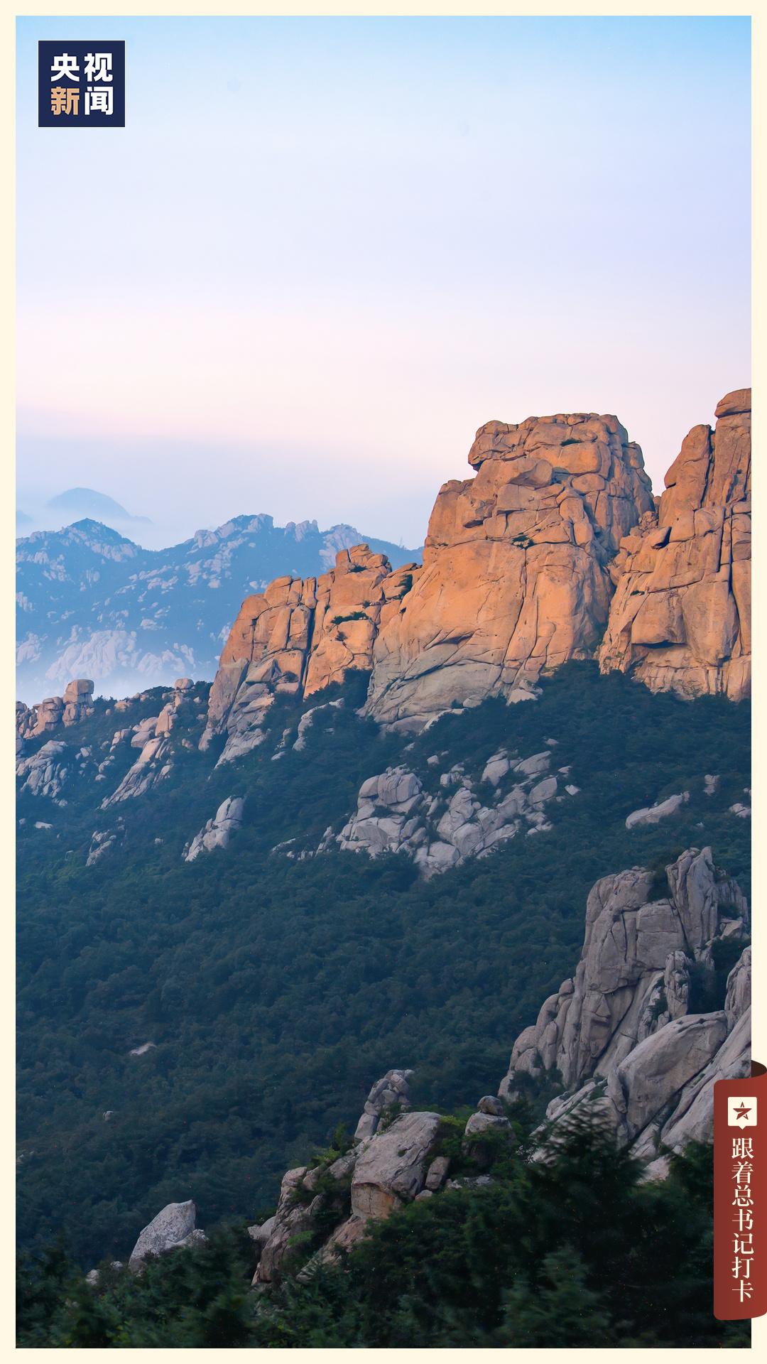 △泰山一天内不同时刻呈现不同景色,日出的金、日暮的红、深夜的蓝、满眼的绿。