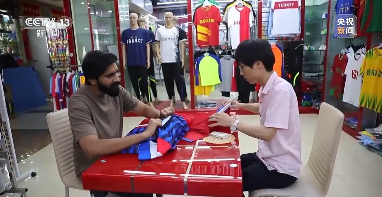 17年前,温从见开始在义乌售卖球迷服装,同样一件球衣、不同国家的客户有着不同的款式需求。在这间不大的铺面背后,温从见还有一支高效的设计团队,可以根据市场需求及时给出设计方案,得益于此,他的球衣能销往全球五十多个国家和地区。
