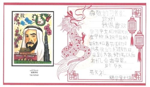 中文名叫“朱婉儿”的12年级学生朱韦雷娅在信中画下龙与长城,她说如今学中文的阿联酋学生越来越多,“相信中阿友好关系将会更加紧密”。