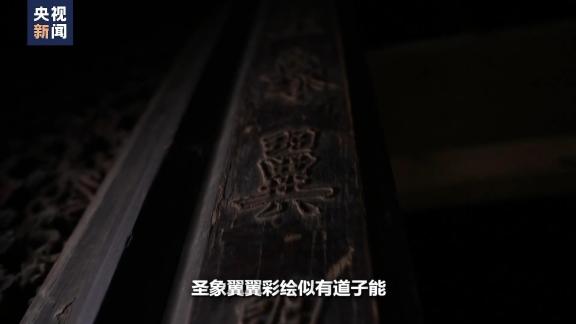 那么刚才提到楹联里头的下楹联叫圣象翼翼彩绘似有道子能,它主要说这里的油漆彩画也是非常精美,就像画圣吴道子亲自绘画的技能一样的精美。
