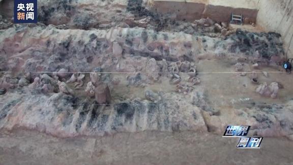 秦始皇帝陵博物院副院长 周萍:其实秦始皇帝陵博物院出土,不仅仅只有彩绘陶俑。现在观众去现场去看的时候,最常看到的就是几种材质,一种就是我们的彩绘陶俑,一种是坑内的土遗址,一种我们铜车马是金属文物;其实在土遗址里面,有很多很多这种木质的遗存。它这个就是我们这个隔梁在建的时候,实际上就相当于用木头去搭了一个相当于小房子,把这些彩绘俑保存在里面。