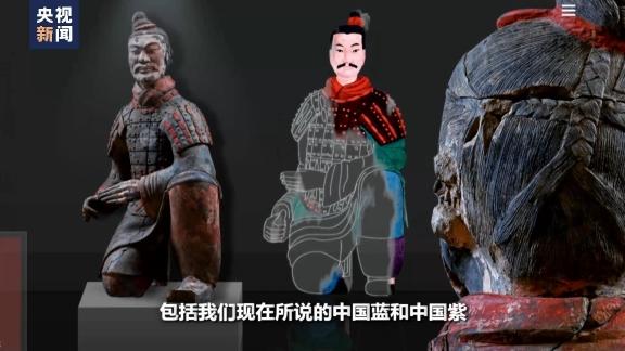 秦始皇帝陵博物院文物保护修复专家 兰德省:那么这在秦俑实际上,目前有八种颜色。红、黄、绿、蓝、紫、白、黑、粉等等,这就是已经定型的八种。但是我们最近也要分析比这个还要多,包括有一些它是白里透红的粉色,还有的它就是几种合成色,包括我们现在所说的中国蓝和中国紫。