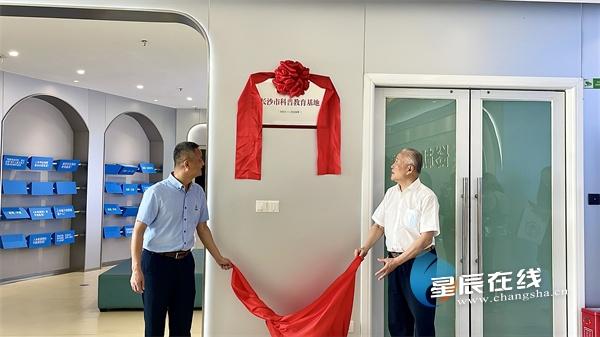 (长沙市科协党组成员、副主席贺宽和长沙市儿童健康科普馆名誉馆长、著闻医生集团理事长、国之名医易著文共同为基地揭牌。)