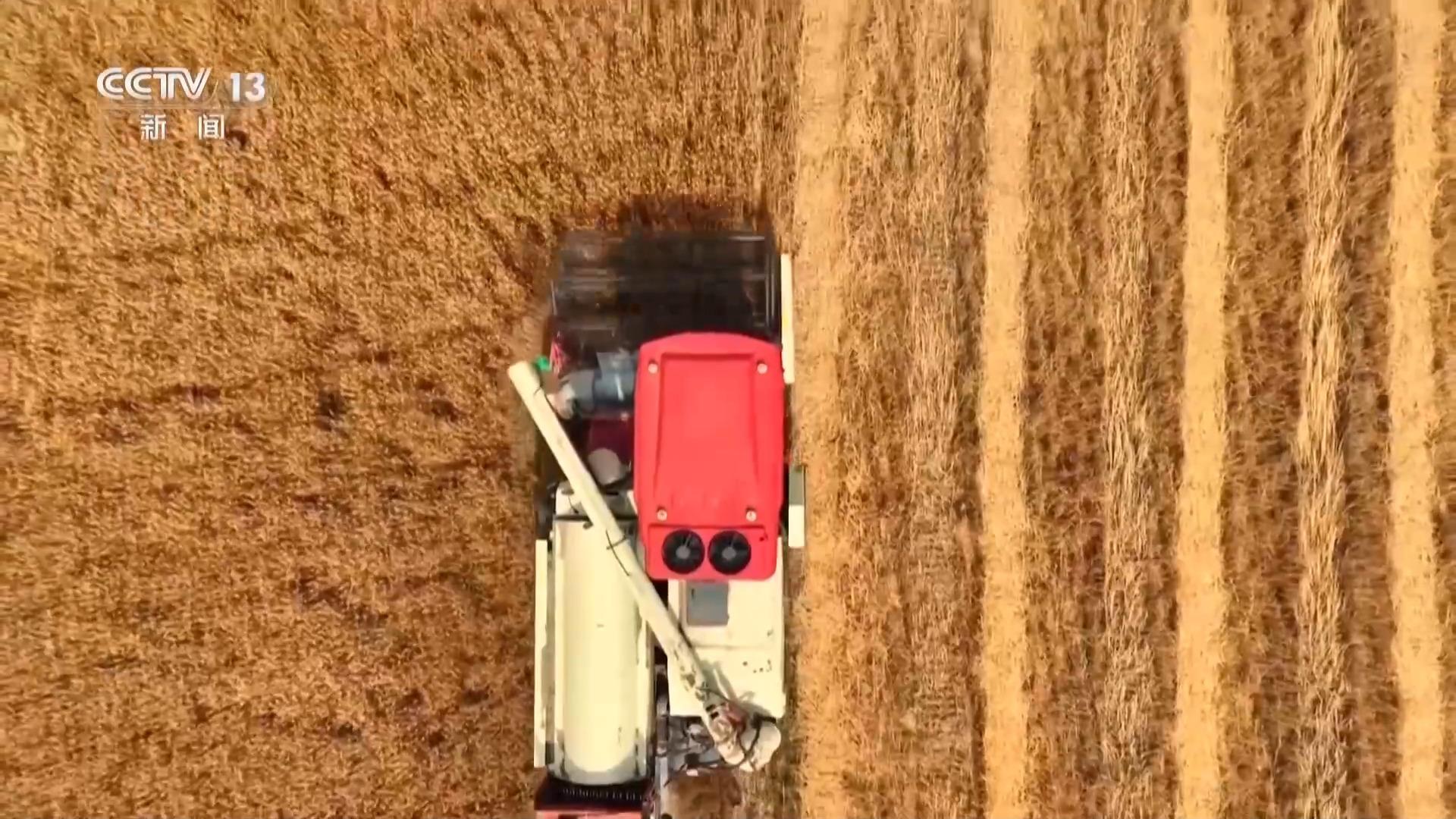 在这里,我们发现智能化新型农机的使用率普遍提高。最新款农机从传统的横轴流改为了纵轴流,使得机收损失率可以降低到0.6%,相当于收获1000斤粮食最多只损失6斤,远远低于国家规定的标准。