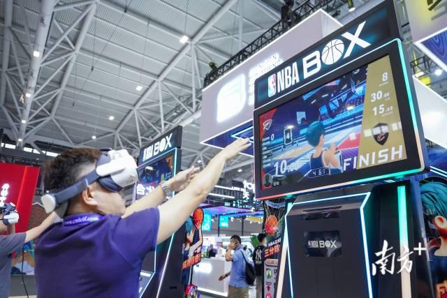 文博会展台上,VR与投篮游戏相结合,观众们纷纷跃跃欲试。