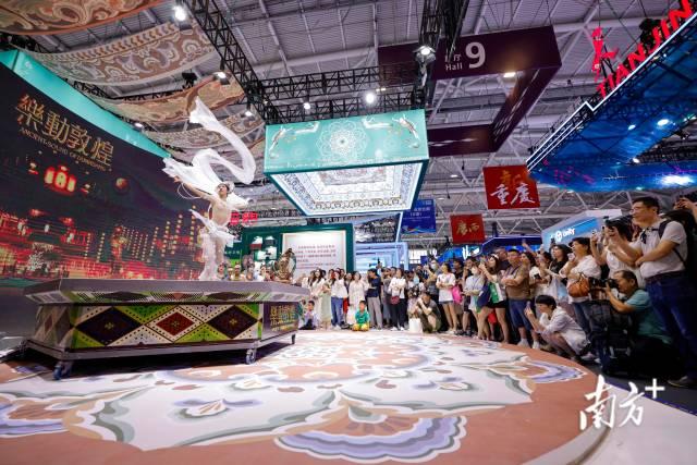 5月23日,文博会现场观众正在欣赏敦煌飞天舞蹈。
