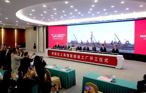 2024年5月23日拍摄的特斯拉上海储能超级工厂开工仪式现场。新华社记者 方喆 摄