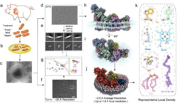 朱家鹏介绍,线粒体是细胞呼吸作用的主要场所,通过将有机物氧化分解,释放能量。此前,在冷冻电镜、X射线晶体学等高分辨率成像技术的支持下,科学界已经能够描绘出线粒体内部结构和关键蛋白质复合体的三维结构,但仍面临诸多挑战。