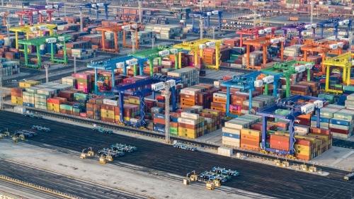 天津港第二集装箱码头有限公司副总经理孙彪说,通过物联网、卫星、5G、人工智能等技术连通“人、车、箱、船、机、场”,装卸作业时间比人工装卸减少26.2%,远洋干线船舶在泊船时效率提升28%。