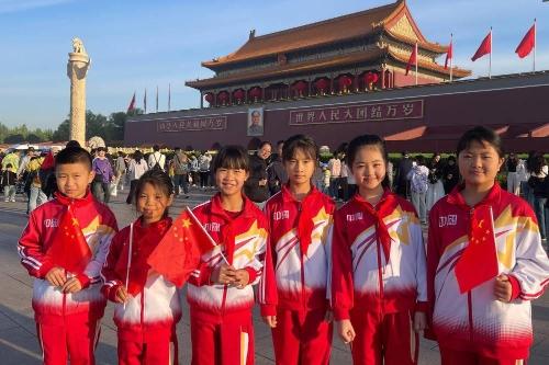 4月30日,“村里的孩儿”音乐班部分成员在参加第28届中国青年五四奖章颁奖暨百场宣讲启动仪式后在北京天安门广场前留影。