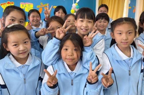 5月30日,在安达市任民镇中心小学,“村里的孩儿”音乐班的孩子们展示提前收到的儿童节礼物——由爱心企业捐赠的新衣服。