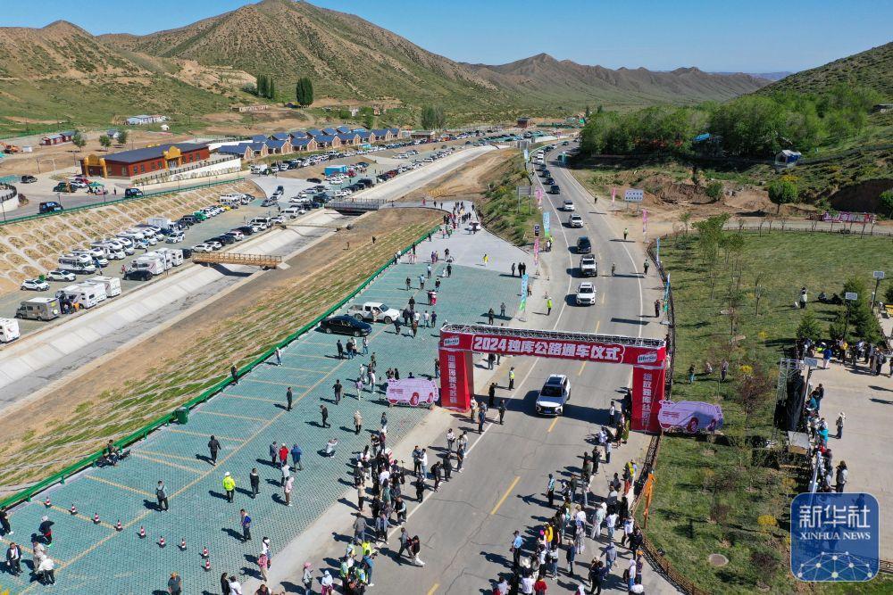 这是6月1日在新疆塔城地区乌苏市独库公路驿站拍摄的通车仪式现场。