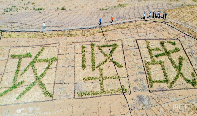 网格化植树封堵流沙(央广网见习记者 邵玉琴 摄)