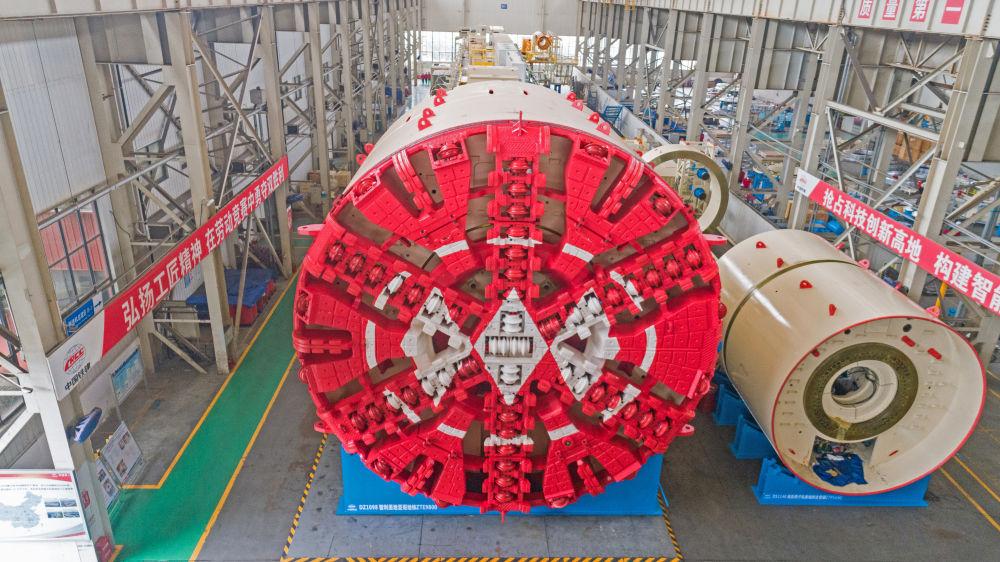 2022年10月,铁建重工出口智利用于圣地亚哥地铁的土压平衡盾构机在湖南长沙生产下线。新华社发(张升平 摄)