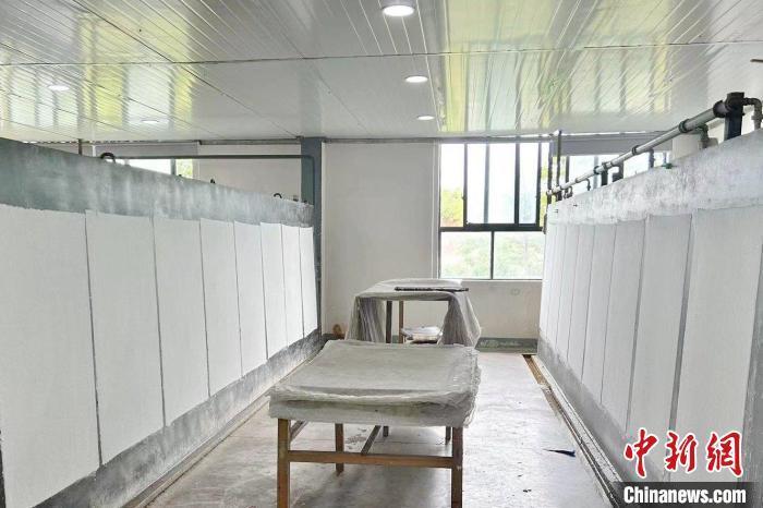 5月28日,工坊内连四纸湿纸平整地刷贴在火墙上焙干。朱莹 摄