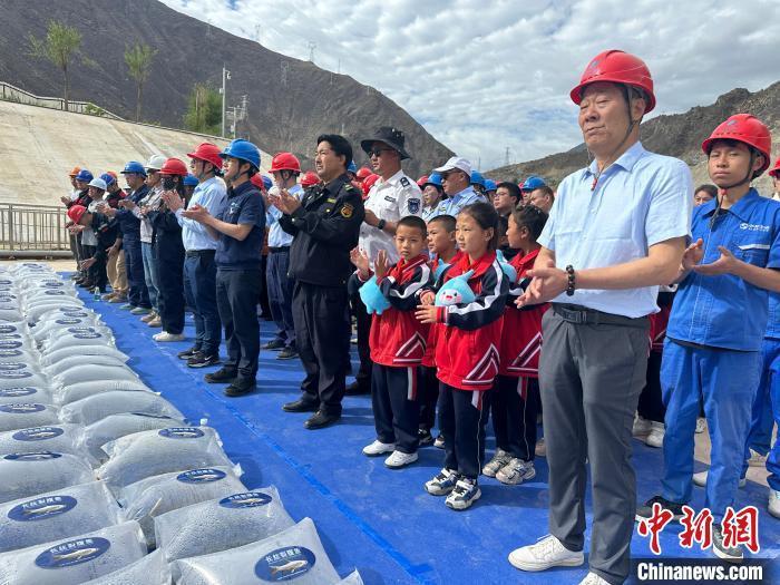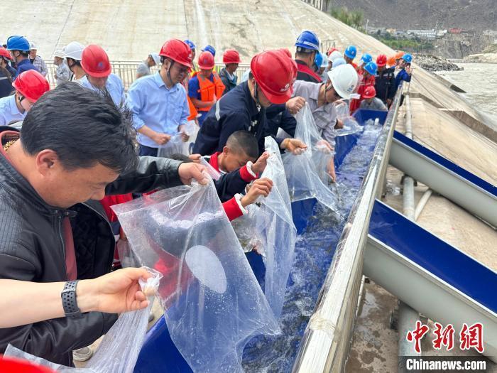 中新网拉萨6月6日电 “鱼儿下水啦!”伴随着阵阵欢呼声,数不清的鱼苗被缓缓投放,流入金沙江怀抱。为促进生态环境绿色健康发展,保护增殖金沙江流域鱼类资源。5日,昌都市农业农村局联合芒康县农业农村局等,在金沙江畔开展鱼类增殖放流活动,23万尾鱼苗“安家”金沙江中。