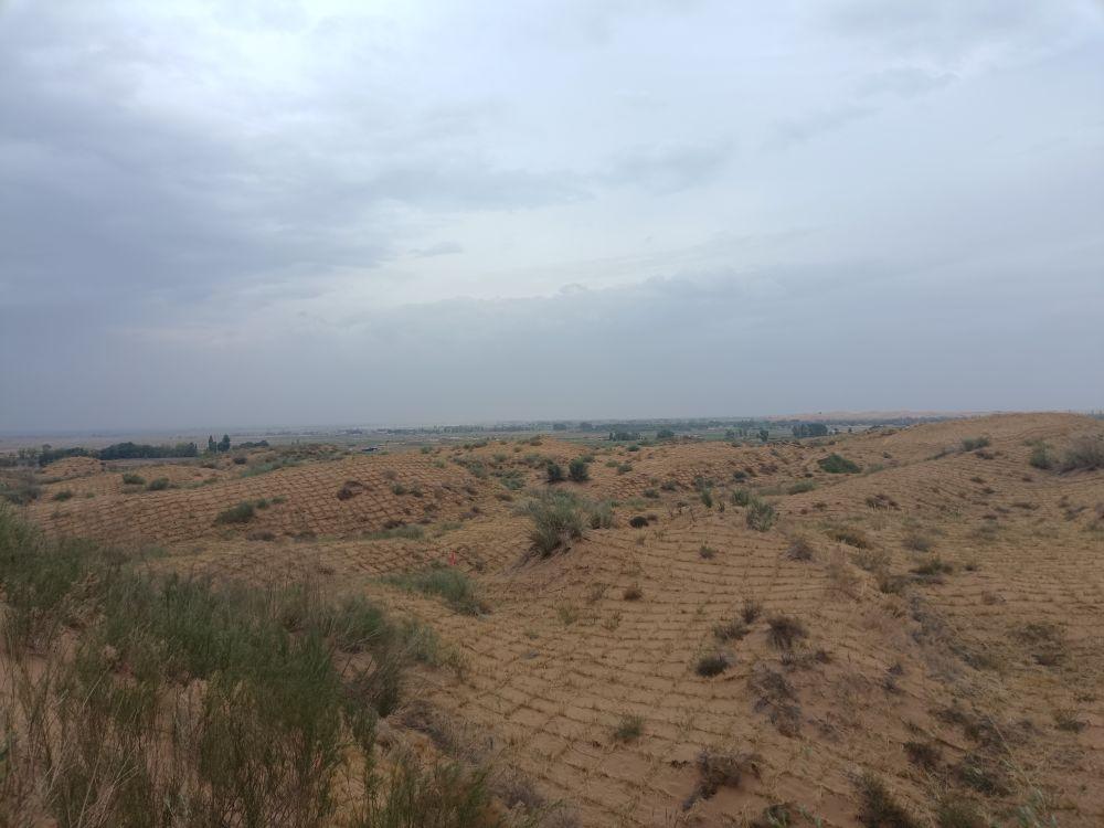 宁夏吴忠市盐池县和内蒙古鄂尔多斯市鄂托克前旗交界处的流动沙丘,今年刚刚完成治理。(孙果 摄)