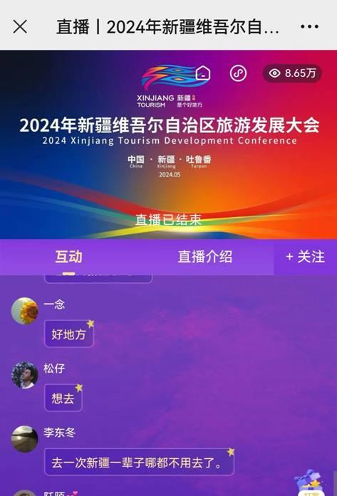 新疆网讯 日前,为期两天的2024年新疆维吾尔自治区旅游发展大会在吐鲁番落下帷幕,近500名中外嘉宾齐聚“火洲”吐鲁番,共谋新疆旅游业高质量发展的美好前景。在主流网络媒体聚焦报道会议内容前提下,大会出现了多个“刷屏”级新媒体产品,网络互动热度高、传播范围广,推动大会影响力不断拔高出圈,成为宣传推介“新疆是个好地方”品牌,展现新疆文化旅游高质量发展的重要窗口。