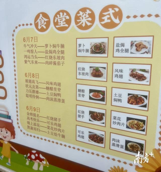 萝卜焖牛腩是“牛气冲天”,盐焗鸡全腿化身“一鸣惊人”,红烧东坡肉成了“鸿运当头”……在广州培正中学考点,这些由学生们“钦点”的菜色,换上了吉祥的新名字,美味十分,心意满分。