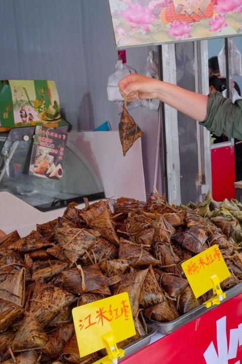 端午节前的周末,山西运城东湖早市热闹非凡。扎成把的艾草、刺绣香囊、五彩绳、各色粽子、时令水果……将节日气氛烘托到了高潮。