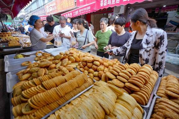 大饼夹一切、煎馍、炒琪、圈圈馍、葱花饼、香酥麻花、油炸丸子、芥末凉粉、老式糕点……“碳水之都”的晨光盛宴,让食客们在热闹市井中感受升腾的城市烟火,唤醒一天活力。