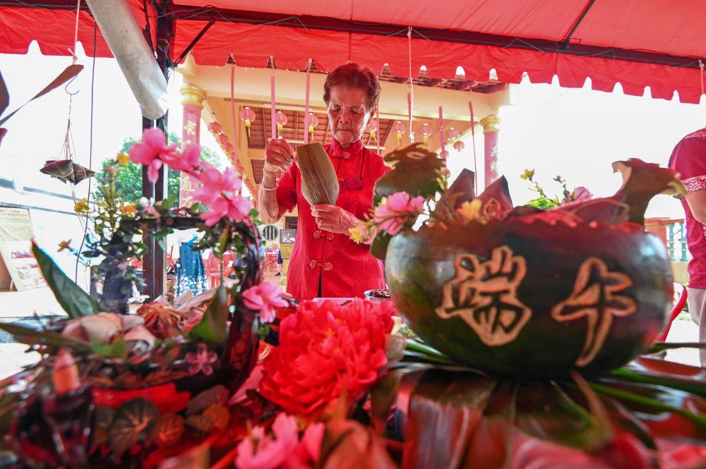 6月8日,一名女子在马来西亚马六甲市参加裹粽子比赛。当日,马来西亚马六甲市举办“2024年庆端午”系列活动,人们以裹粽子、游龙舟等方式迎接端午节。新华社发(张纹综摄)
