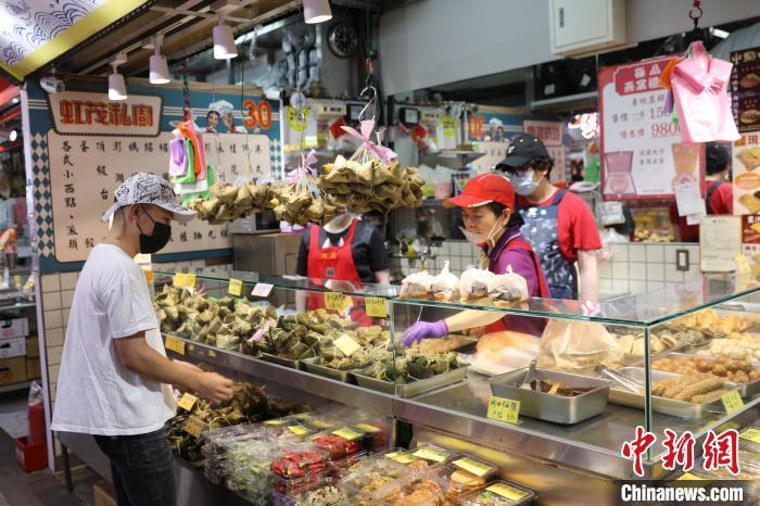 6月10日逢农历五月初五端午节,民众在台北南门市场购买粽子。中新社记者 张晓曦 摄