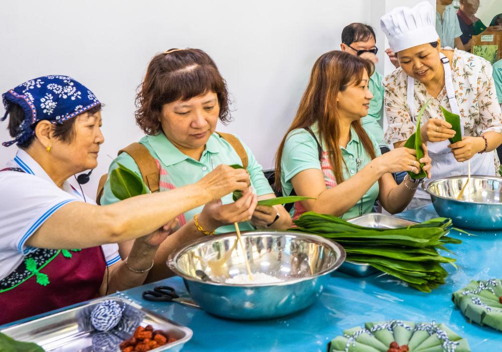 2024年6月9日,湖北省秭归县茅坪镇滨湖社区群众一起包粽子。新华社发(郑家裕 摄)