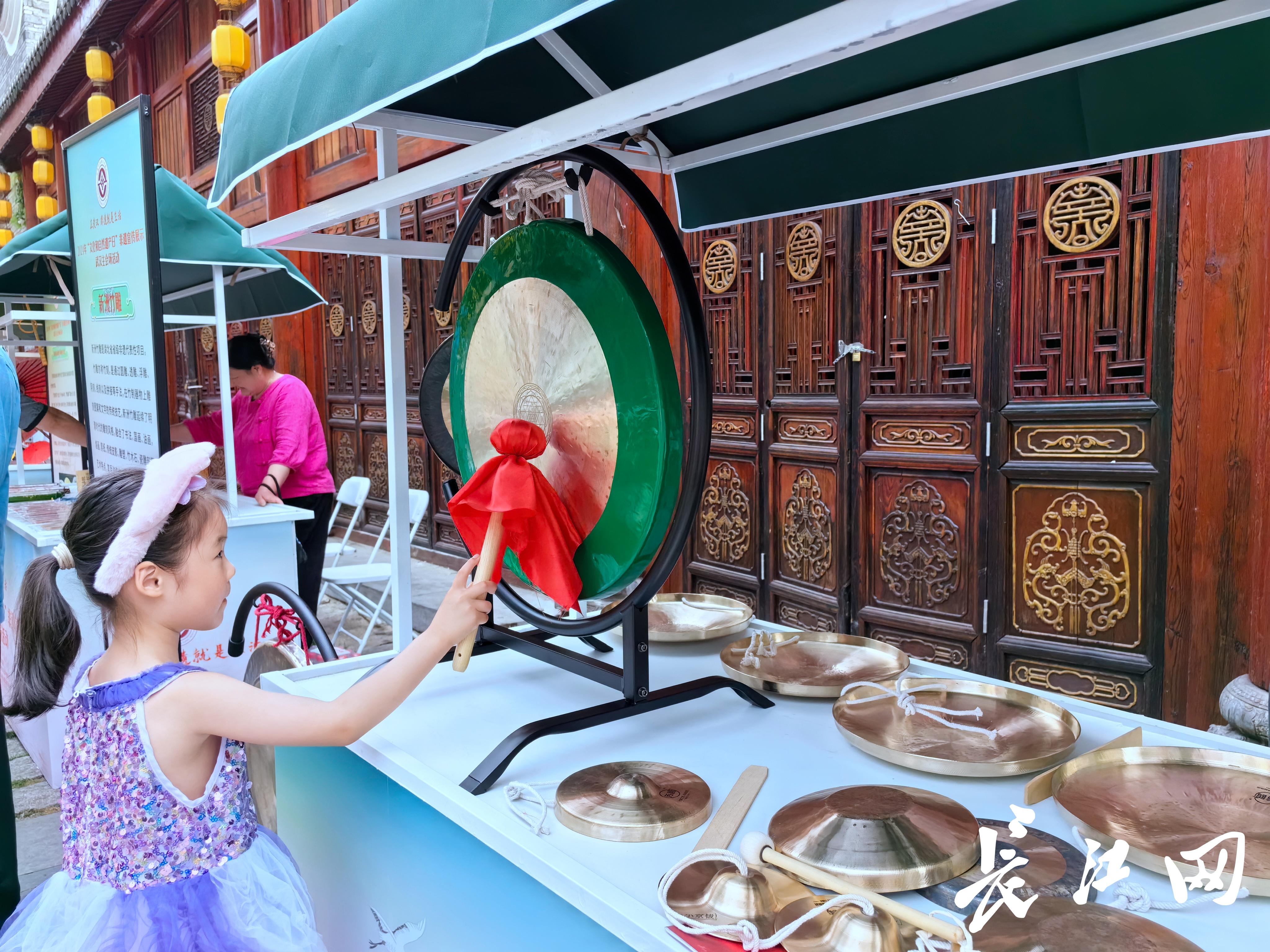 一位小朋友正在体验汉锣。长江网记者熊美琪 摄