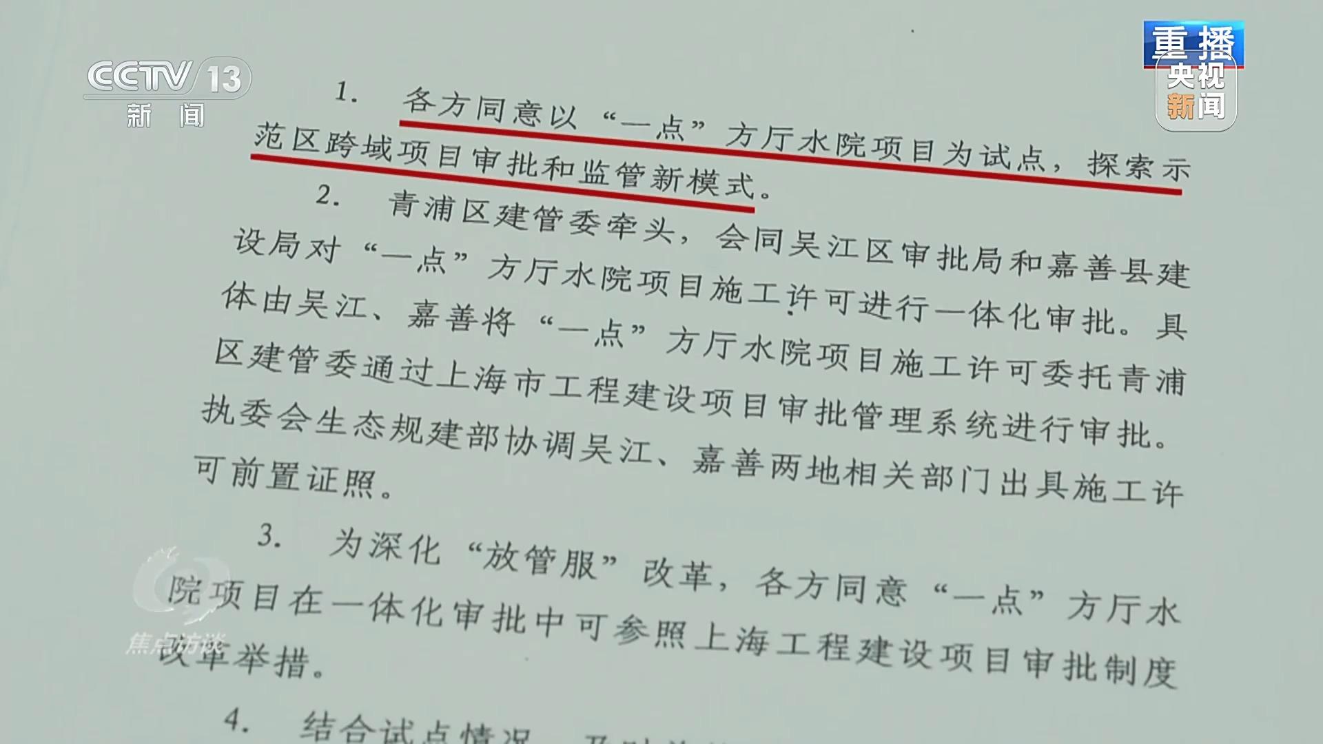经过几个月的协调沟通,在国家发展改革委支持下,由执委会牵头,方厅水院项目最终采用跨域一体化审批模式,浙江省嘉兴市嘉善县和江苏省苏州市吴江区赋权给上海市青浦区,由青浦区牵头实施项目信息报送、招标及一体化方案审批。根据《合作协议》,各方同意以方厅水院项目为试点,探索示范区跨域项目审批和监管新模式。