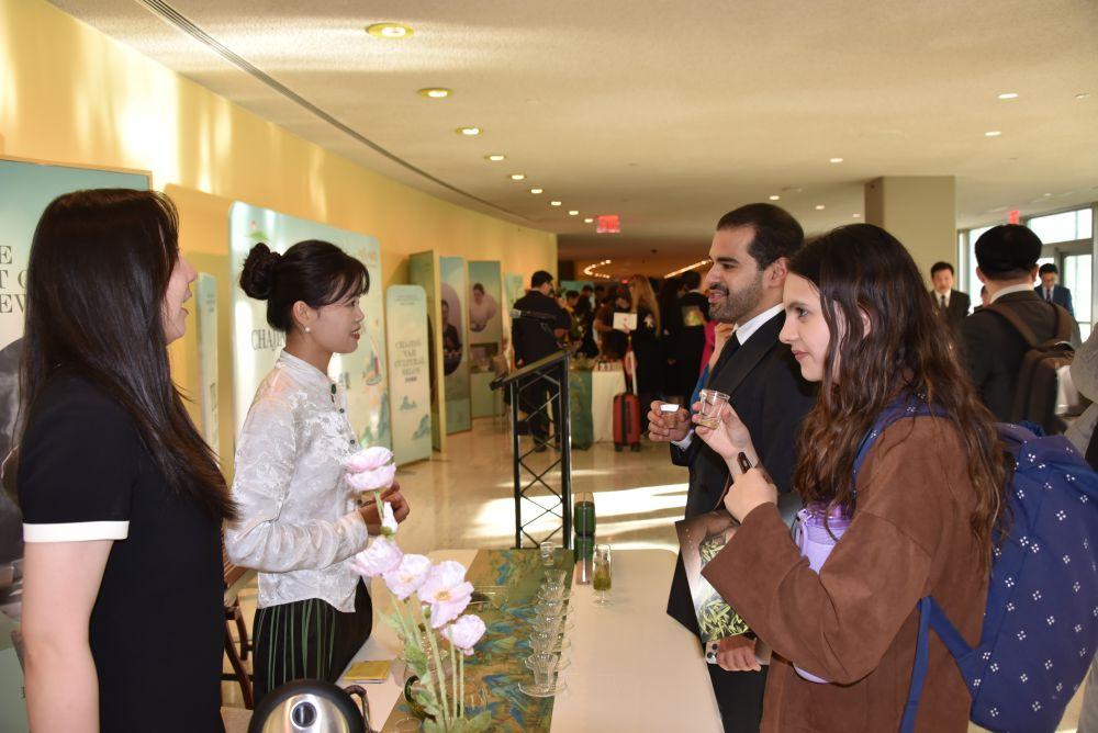 2024年5月21日,在位于纽约的联合国总部,人们参加“茶和天下”国际茶日展示和庆祝活动。新华社记者王建刚摄