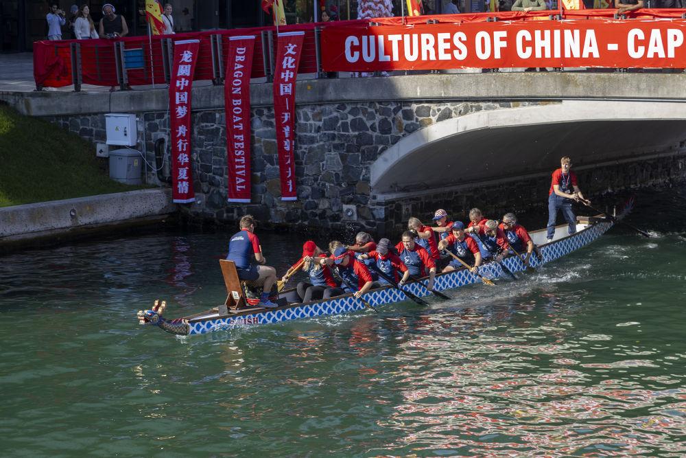 6月8日,人们在南非开普敦参加第二届“文化中国·开普敦龙舟节”比赛。新华社记者王雷摄
