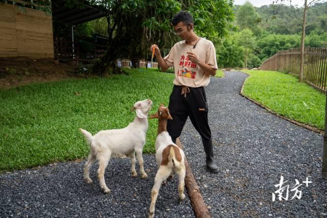 泰康民宿的萌宠乐园里,工作人员正在喂养动物。