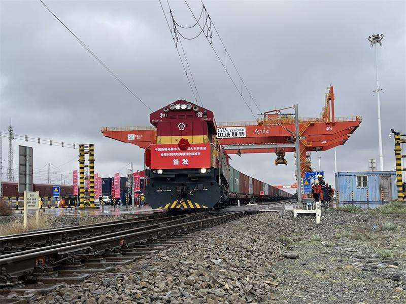 4月26日,乌鲁木齐—萨莱诺中欧班列顺利开行,这标志着新疆中欧班列境外南通道跨“两海”线路成功运行。吴奇摄